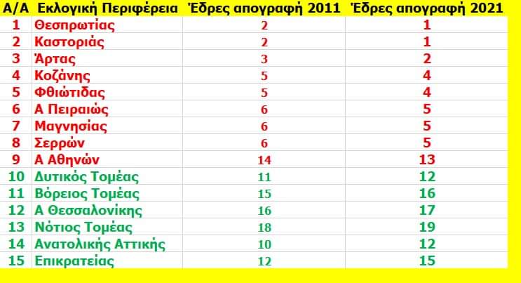 🔘 Σε 9 εκλογικές περιφέρειες έχουμε μείωση των εδρών κατά μία έδρα.