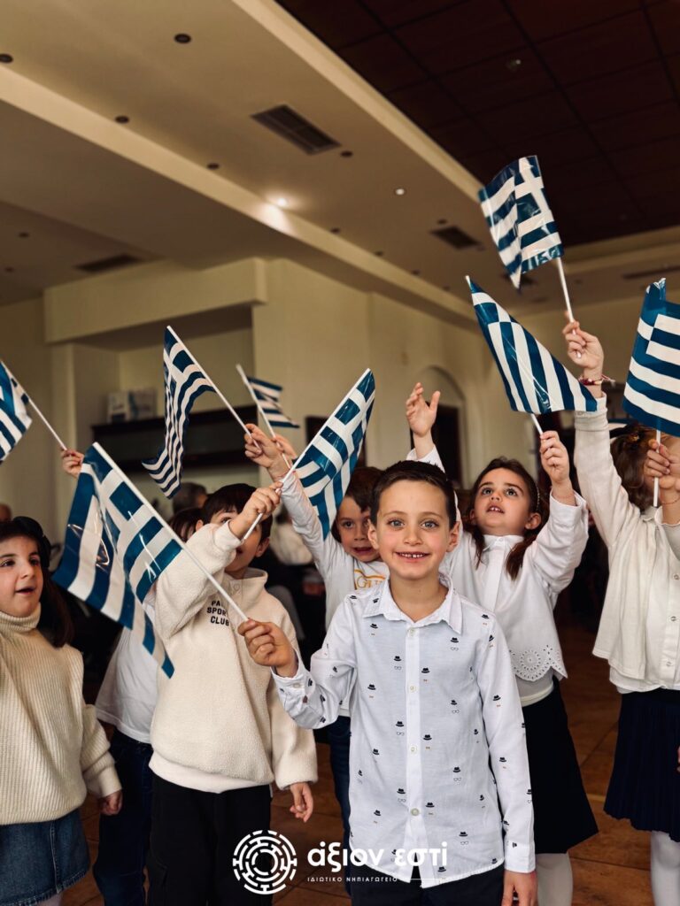 Με αφορμή τον εορτασμό της 25ης Μαρτίου, το Ιδιωτικό Νηπιαγωγείο «Άξιον Εστί» υλοποίησε μια ιδιαίτερα σημαντική κοινωνική δράση, επισκεπτόμενο τη Μονάδα Φροντίδας Ηλικιωμένων «ΕΡΑΤΩ».Οι μικροί μαθητές και οι μικρές μαθήτριες, μέσα από τραγούδια και ποιήματα αφιερωμένα στην εθνική επέτειο, προσέφεραν στιγμές χαράς και συγκίνησης στους φιλοξενούμενους της μονάδας. Η παρουσία τους δημιούργησε ένα κλίμα ζεστασιάς και ουσιαστικής επικοινωνίας, αναδεικνύοντας τη δύναμη της απλής, ανθρώπινης επαφής.Η πρωτοβουλία αυτή εντάσσεται στη φιλοσοφία του σχολείου για την παροχή βιωματικών εμπειριών μάθησης, που ενισχύουν όχι μόνο τις γνωστικές δεξιότητες των παιδιών, αλλά και την καλλιέργεια αξιών, όπως η προσφορά, ο σεβασμός και η αλληλεγγύη.Το Ιδιωτικό Νηπιαγωγείο «Άξιον Εστί» ευχαριστεί θερμά τη Μονάδα «ΕΡΑΤΩ» και τη διοίκησή της για την εγκάρδια υποδοχή και τη συνεργασία, που κατέστησαν δυνατή την υλοποίηση αυτής της ξεχωριστής δράσης.