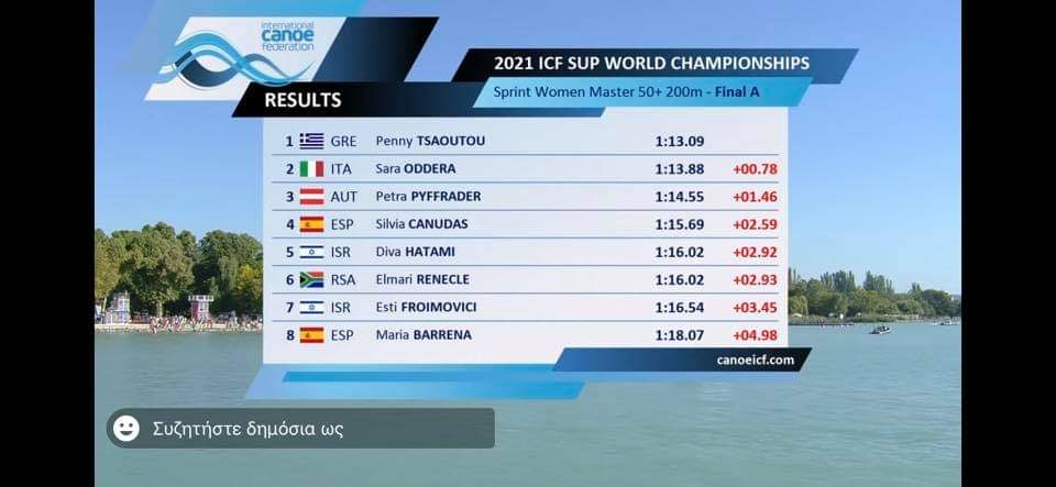 Στην Ουγγαρία στέφθηκε παγκόσμια πρωταθλήτρια στο SUP η αθλήτρια του ΝΟΒΑ Πένυ Τσαούτου που συμμετείχε με την Εθνική ομάδα στο Παγκόσμιο Πρωτάθλημα SUP που διεξάγεται στη Λίμνη Βάλατον της Ουγγαρίας και θα ολοκληρωθεί στις 12 Σεπτεμβρίου.