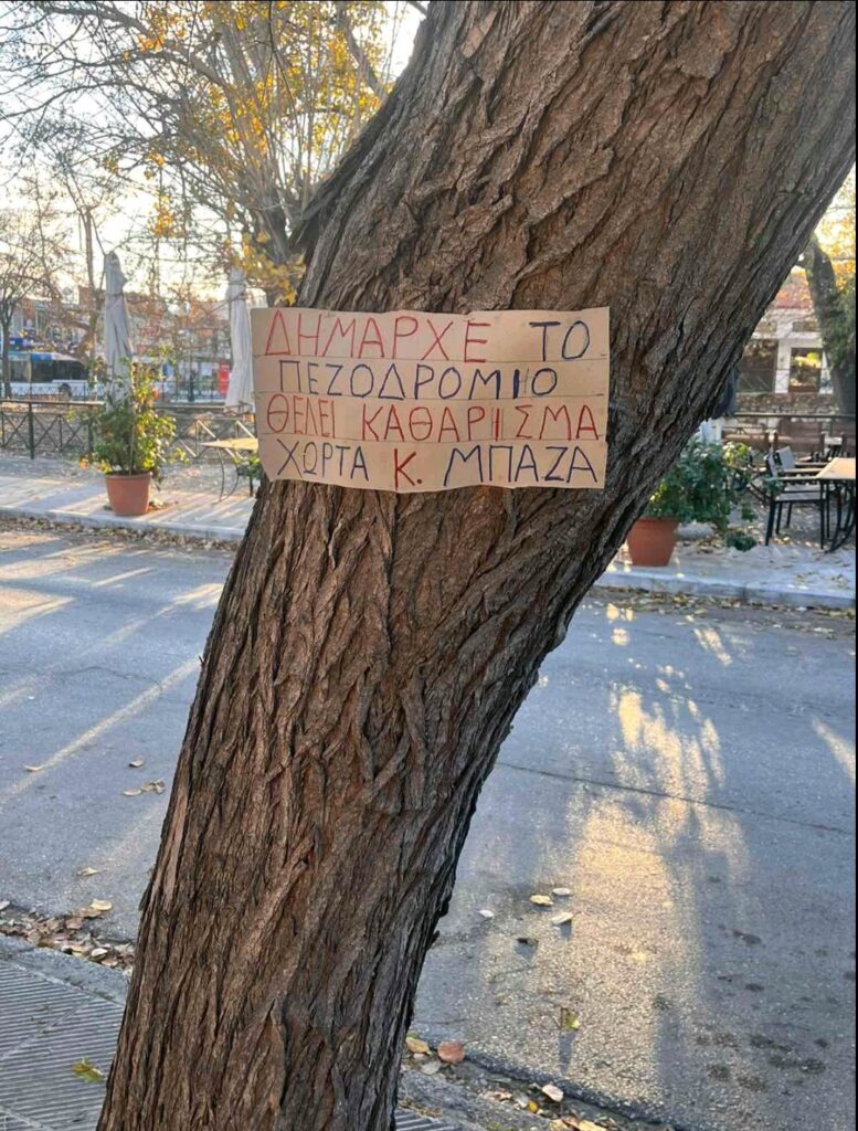 Viral έχει γίνει η ταμπέλα που αποφάσισε να βάλει πολίτης στο δένδρο έξω από το σπίτι του στα Παλιά με την οποία ζητά σπο τον Α.Μπέο να καθαρίσει τη γειτονιά του από τα χόρτα τα μπάζα στο πεζοδρόμιο. Ομογουμενως ευφάνταστη διαμαρτυρία… και αν θέλει τώρα ο Δήμος ας μην καθαρίσει…