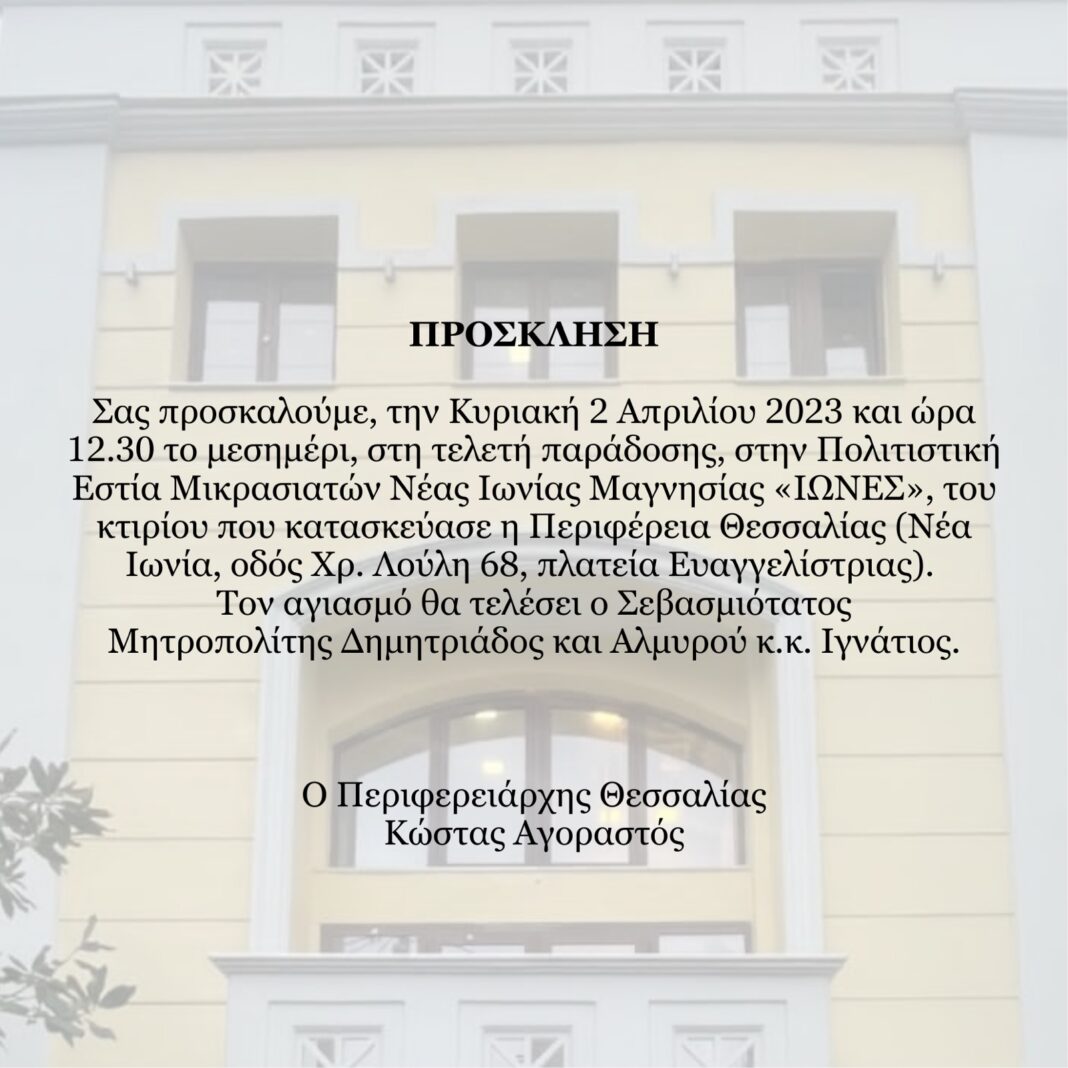 Πόλη Παραδίδεται το κτίριο των Ιώνων από την Περιφέρεια Πόλη Παραδίδεται το κτίριο των Ιώνων από την Περιφέρεια 31 Μαρτίου 2023 ΠΑΡΟΜΟΙΑ ΑΡΘΡΑΠΕΡΙΣΣΟΤΕΡΑ Δύο ανήλικοι οι δράστες των 8 κλοπών σε καταστήματα & επιχειρήσεις στον Βόλο Μεγάλη συγκίνηση στον Βόλο – Έφυγε από τη ζωή η Κέβη Δερβένη, πρωτοπόρος του γυναικείου κινήματος Παρέδωσε στον Γ.Βρούτση τη μελέτη αναβάθμισης του Πανθεσσαλικού ο Α.Μπέος Πρόσφατα Ο Δήμος Αλμυρού κατέθεσε τεκμηριωμένη πρόταση για νέο Πολιτιστικό Κέντρο στον Αλμυρό 16 Νοεμβρίου 2025 Όχι απο το Περιφερειακό Συμβούλιο στη δημιουργία μονάδων καύσης σκουπιδιών 16 Νοεμβρίου 2025 Έπιασε δουλειά η Διαχειριστική Επιτροπή της Αγροδιατροφικής Σύμπραξης της Περιφέρειας Θεσσαλίας 16 Νοεμβρίου 2025 Ο ΠΑΓΑΣΗΤΙΚΟΣ ΜΑΣ ΕΝΩΝΕΙ – Αίτημα 41 πολιτών να πάρει ξεκάθαρη θέση για το LNG... 16 Νοεμβρίου 2025 ΑΝΑΔΙΑΡΘΡΩΣΗ ΘΕΣΕΩΝ ΔΣ ΟΕΒΕΜ ΜΕΤΑ ΤΗ ΠΑΡΑΊΤΗΣΗ ΦΟΒΟΥ 16 Νοεμβρίου 2025 Συγκίνηση για την απώλεια του Βολιώτη γλύπτη Αναστάσιου Κρατίδη 15 Νοεμβρίου 2025 Ανατροπή λεωφορείου με 40 επιβάτες στην παλιά Εθνική Οδό πριν τον Ριζόμυλο – 10 τραυματίες 15 Νοεμβρίου 2025 Θα περιμένουν πολύ ακόμα οι κάτοικοι του Δήμου Ζαγοράς-Μουρεσίου, για την αποκατάσταση του οδικού δικτύου; 14 Νοεμβρίου 2025 Όχι στη μονάδα LNG στον Παγασητικό από φορείς Μαγνησίας και Greenpeace 14 Νοεμβρίου 2025 Δείτε live στις 8 μ.μ την συνεδρίαση του Περιφερειακού Συμβουλίου 14 Νοεμβρίου 2025