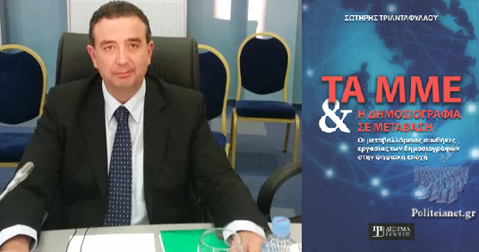 Το βιβλίο του δημοσιογράφου και προέδρου της Πανελλήνιας Ομοσπονδίας Ενώσεων Συντακτών Σωτήρη Τριανταφύλλου «Τα ΜΜΕ και η δημοσιογραφία σε μετάβαση. Οι μεταβαλλόμενες συνθήκες εργασίας των δημοσιογράφων στην ψηφιακή εποχή» θα παρουσιαστεί στη Λάρισα και τον Βόλο.