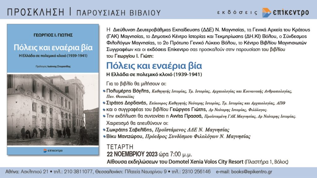 Το βιβλίο «Πόλεις και εναέρια βία. Η Ελλάδα σε πολεμικό κλοιό (1939-1941)» (εκδ.