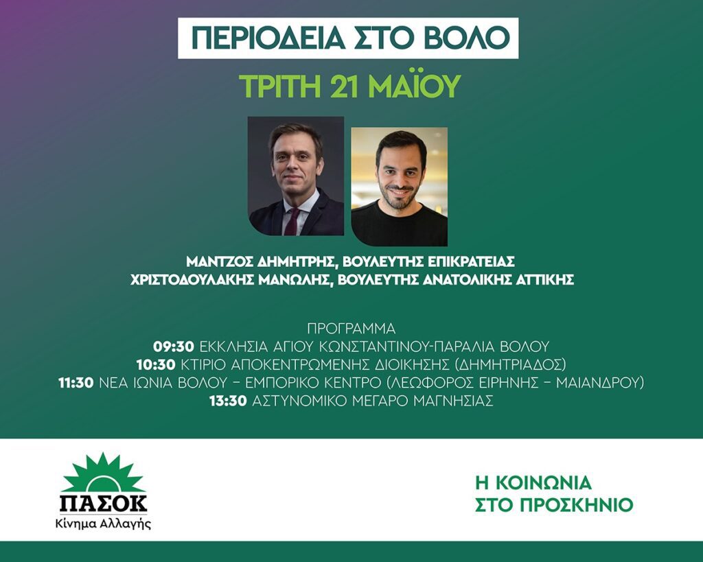Πρόγραμμα κλιμακίων στο Νομό Μαγνησίας του ΠΣΣΟΚ- Κίνημα Αλλαγής