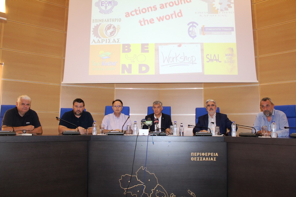 Περιφέρεια Θεσσαλίας και Επιμελητήρια ενώνουν δυνάμεις για τη στήριξη της μικρομεσαίων επιχειρήσεων με ένα ευρύ πλέγμα δράσεων εξωστρέφειας που παρουσίασαν ο Περιφερειάρχης Θεσσαλίας Κώστας Αγοραστός μαζί με τους προέδρους των Επιμελητηρίων Μαγνησίας Τέλη Μπασδάνη, Τρικάλων Βασίλη Γιαγιάκο, Καρδίτσας Κώστας Ζυγογιάννη και τον α αντιπρόεδρο του Επιμελητηρίου Λάρισας Δημήτρη Παπαλέξη. Πρόκειται για έξι δράσεις που αφορούν στην προβολή θεσσαλικών προϊόντων και τουριστικών υπηρεσιών σε μεγάλες εκθέσεις στην Ελλάδα και το εξωτερικό, ενώ τις επόμενες ημέρες, όπως ανέφερε ο Περιφερειάρχης Θεσσαλίας Κώστας Αγοραστός ανακοινώνεται το Πρόγραμμα Ψηφιακής Αναβάθμισης των Επιμελητηρίων που χρηματοδοτεί η Περιφέρεια Θεσσαλίας από το ΕΣΠΑ Θεσσαλίας 2014-2020 αλλά και τα αποτελέσματα του Προγράμματος ενίσχυσης ρευστότητας μικρομεσαίων επιχειρήσεων ΑΝΑΣΑ ΙΙ.