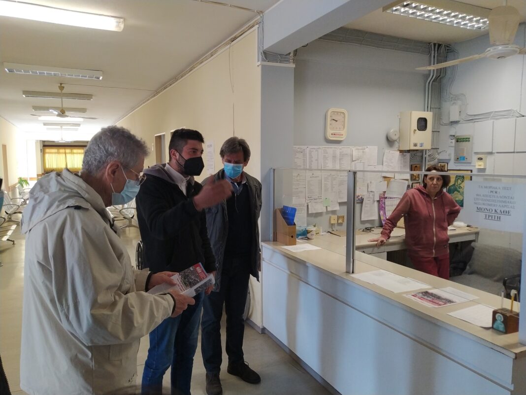 Κλιμάκιο του ΚΚΕ αποτελούμενο από τους υποψήφιους βουλευτές Θοδωρή Γεωργαδάκη, πρόεδρο της Ομοσπονδίας Αγροτικών Συλλόγων Μαγνησίας, τον Δημήτρη Τζουμάκη, ηθοποιό και τον Αποστόλη Ριζόπουλο, περιόδεψε το πρωί της Τετάρτης στο Κέντρο Υγείας Αλμυρού αλλά και στο Κέντρο της πόλης.