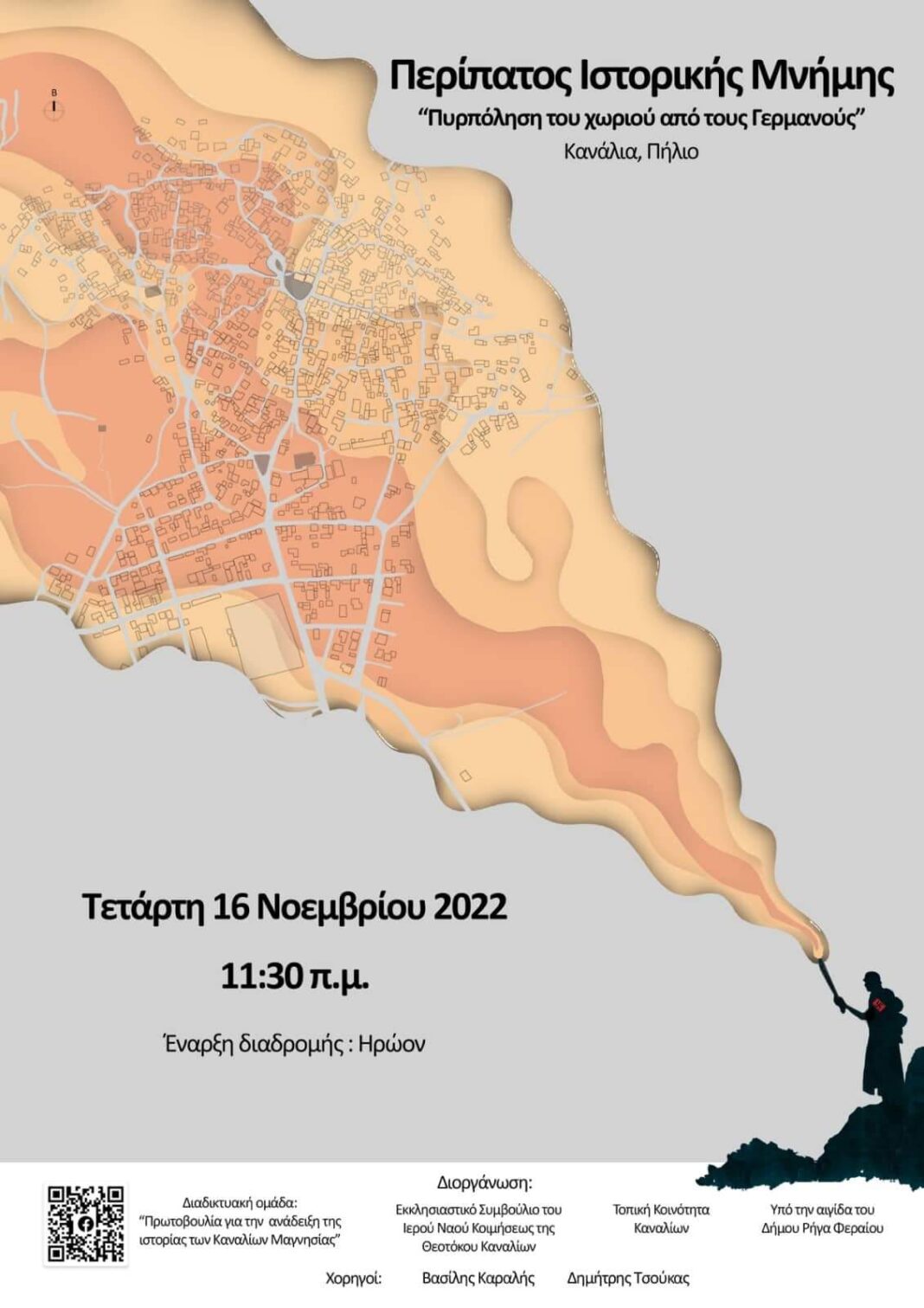 Στις 16 Νοεμβρίου 2022 στις 11.30 θα πραγματοποιηθεί στα Κανάλια περίπατος ιστορικής μνήμης με τους μαθητές Ε’ και Στ’ Δημοτικού, Γυμνασίου και Λυκείου με στάσεις στα σημεία που συνέβησαν ψυχρές δολοφονίες γυναικών που προσπαθούσαν να σβήσουν τα σπίτια τους από την θηριωδία των κατακτητών.