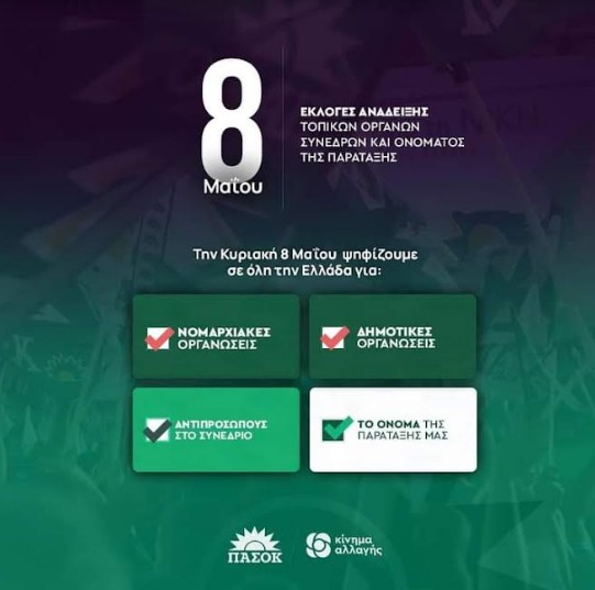 Οι υποψηφιότητες για τα όργανα και τους συνέδρους κατατίθενται ηλεκτρονικά μέσω φόρμας που έχει αναρτηθεί στον ιστότοπο του Κινήματος Αλλαγής (https://kinimaallagis.gr/aitisi-8maiou), είτε με email που θα αποστέλλεται στο ekloges8maiou@gmail.com μέχρι και την Τετάρτη 4/5/22 και ώρα 14:00.
