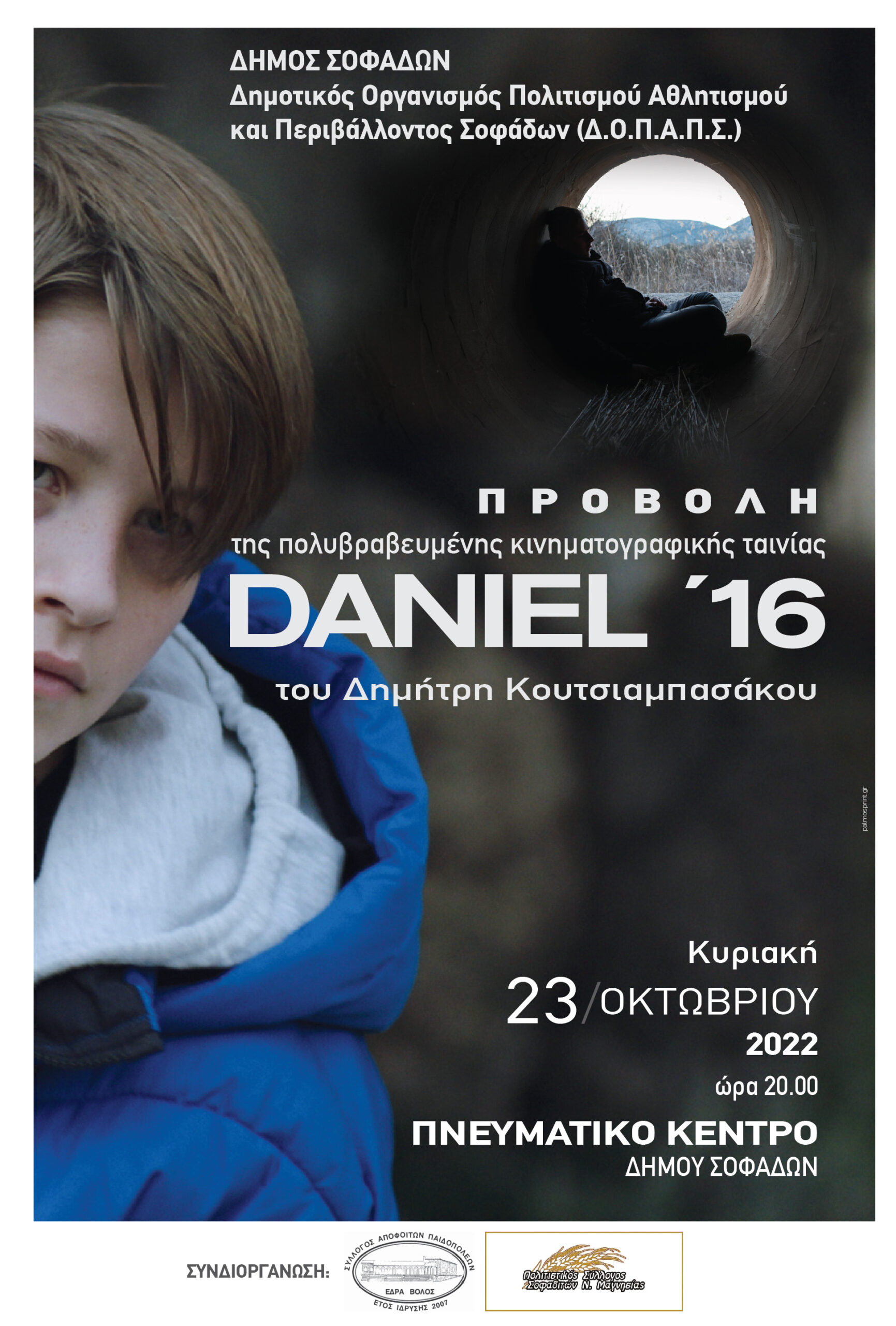 Η πολυβραβευμένη ταινία «Daniel ‘16» του Δημήτρη Κουτσιαμπασάκου προβλήθηκε στο Πνευματικό Κέντρο Σοφάδων τη Κυριακή 23 Οκτωβρίου 2022