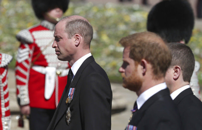 Όπως αναφέρει ο Χάρι, ο αδελφός του Γουίλιαμ, «έγινε κόκκινος από τον θυμό του» κατά τη διάρκεια μιας βόλτας μισής ώρας που έκαναν μαζί με τον πατέρα τους και νυν βασιλιά Κάρολο, στο Frogmore Cottage μετά την κηδεία του Φιλίππου στις 17 Απριλίου 2021.