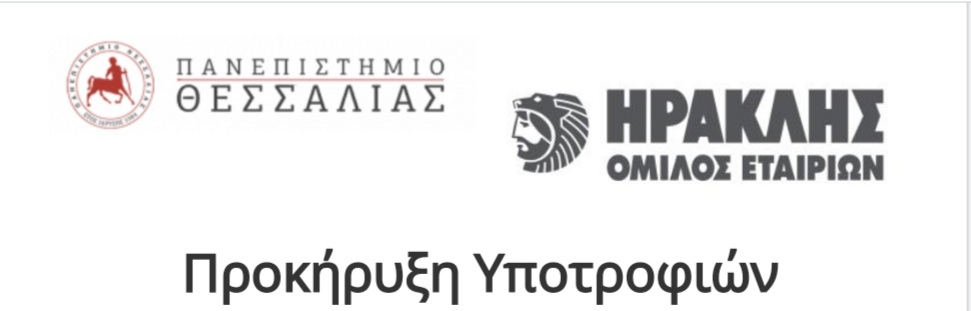Το Πρόγραμμα Μεταπτυχιακών Σπουδών “Ανάλυση και Διαχείριση Ενεργειακών Συστημάτων” (ΠΜΣ-ΑΔΕΣ) στο Τμήμα Μηχανολόγων Μηχανικών (ΤΜΜ) του Πανεπιστημίου Θεσσαλίας προκηρύσσει για το ακαδημαϊκό έτος 2021-22 τη χορήγηση υποτροφιών φοίτησης (έως τέσσερις – αναλόγως των επιτυχών αποτελεσμάτων συμμετοχής), χρηματοδοτούμενων από την Ανώνυμο Γενική Εταιρεία Τσιμέντων Ηρακλής (Α.Γ.Ε.Τ. Ηρακλής).
