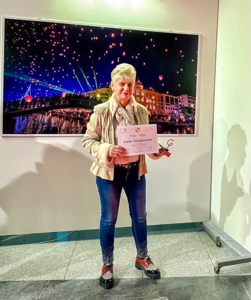 Πρώτο βραβείο στο πανελλήνιο διαγωνισμό φωτογραφίας του Δήμου Βόλου και της Φωτογραφικής Λέσχης Βόλου, για την προβολή της πόλης του Βόλου ελαβε η δημοσιογράφοςΕλένηΠαπαθανασίου.:Ευχαριστώ την κριτική επιτροπή για την τιμή στο πρόσωπό μου. Συγχαρητήρια σε όλες τις συμμετέχουσες και τους συμμετέχοντες στον διαγωνισμό, όπως και στις αγαπημένες φίλες και φίλους φωτογράφους της Volos Lens και της Φωτογραφικής Λέσχης Βόλου για την κατάκτηση των διακρίσεων. Καλές γιορτές λοιπόν:… έγραψε σε ανάρτησή της η φωτογράφος.
