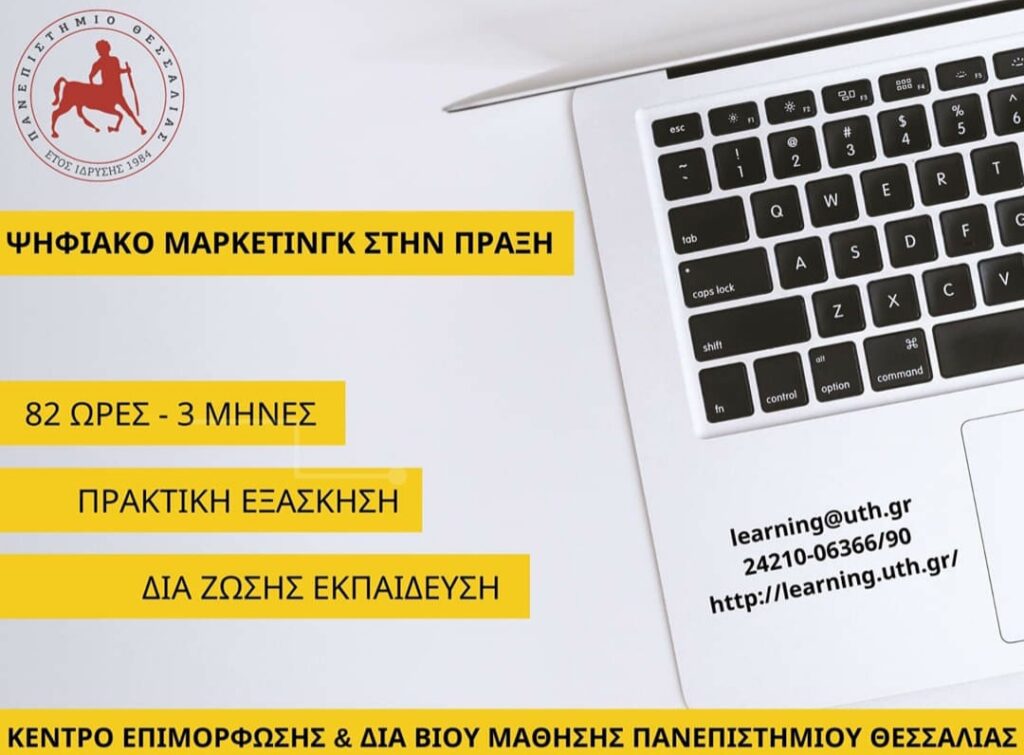 Το Κέντρο Επιμόρφωσης & Διά Βίου Μάθησης του Πανεπιστημίου Θεσσαλίας σας καλωσορίζει στο νέο επιμορφωτικό πρόγραμμα με τίτλο «Ψηφιακό Μάρκετινγκ στην Πράξη»