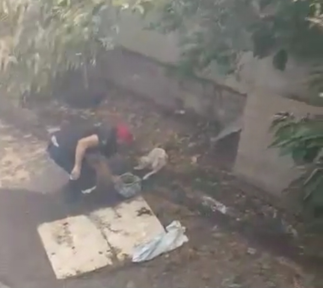Ο πυροσβέστης βάζει νερό στο τρομαγμένος σκυλάκι πριν απομακρυνθεί αφού πρώτα διαπίστωσε πως είναι καλά