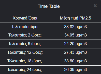 Τα pm 2,5 κατέγραψαν στις 28 Νοεμβρίου μέσο όρο τιμών 17 μg/m3, στις 29 Νοεμβρίου  μέσο όρο τιμών 15 μg/m3 και στις 30 Νοεμβρίου μέσο όρο τιμών 25 μg/m3. Σύμφωνα με την ελληνική και ευρωπαϊκή νομοθεσία,  το όριο για τα pm 2,5  είναι  25 μg/m3 (μέση ετήσια τιμή).