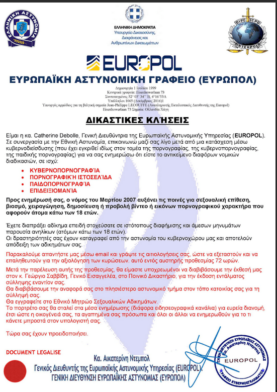 Και σαν να μην έφταναν όλα αυτά, κυκλοφορούν και εκφοβιστικά e-mails που παριστάνουν την Europol ή άλλες Αρχές, κατηγορώντας τον παραλήπτη για σοβαρά εγκλήματα και ζητώντας χρήματα ή προσωπικά στοιχεία. Οι Αρχές ξεκαθαρίζουν ότι πρόκειται για καθαρή απάτη.