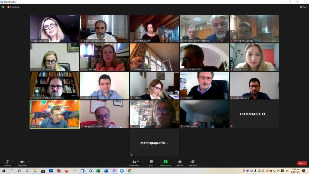 Στη συνέχεια των επαφών με τους αρχηγούς των πολιτικών κομμάτων, οι εκπρόσωποι των εργαζομένων είχαν σήμερα τηλεδιάσκεψη με τον αρχηγό της αξιωματικής αντιπολίτευσης κ. Αλέξη Τσίπρα, στον οποίο ανέπτυξαν τις θέσεις τους και τους λόγους, για τους οποίους ζητούν την απόσυρση του νομοσχεδίου και την έναρξη διαλόγου όλων των εμπλεκόμενων φορέων.