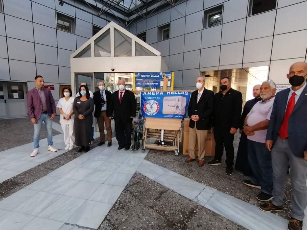 Συνάντηση εργασίας πραγματοποίησαν τα μέλη του Δ.Σ. του τμήματος AHEPA HJ48 RIGAS FERAIOS VELESTINO με τη Διοίκηση του ΓΝ Βόλου «Αχιλλοπούλειο» όπου έγινε προσφορά ενός (1) κρεβατιού ασθενών, ενός (1) τροχήλατου αμαξιδίου, ενός (1) αεροστρώματος κατακλίσεων και ενός (1) κλιματιστικού μηχανήματος για τις ανάγκες της Μονάδας Χημειοθεραπείας του Νοσοκομείου. Πρόσθετα τα μέλη του τμήματος εξέφρασαν την πρόθεση τους και την διάθεση τους να προσφέρουν διαχρονικά βοήθεια στο Νοσοκομείο στο πλαίσιο των δυνατοτήτων τους. Η Διοίκηση ευχαριστεί θερμά για την προσφορά τους με