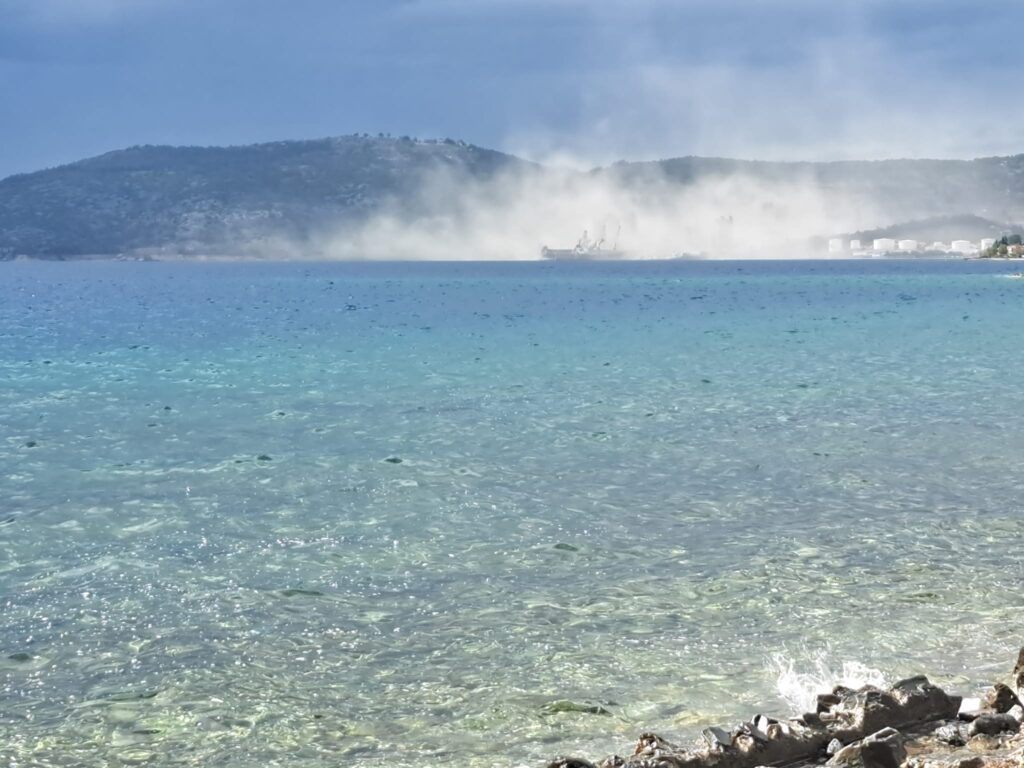 Τα< αυξημένα μποφόρ του σημερινού απογεύματος σε συνδυασμό με την έλλειψη βροχής και προφανώς την μη διαβροχή των εγκαταστάσεων της τσιμεντοβιομηχανίας έφεραν το αποτέλεσμα που κατέγραψαν με τα κινητά τους τηλέφωνα οι πολίτες από την περιοχή του Σουτραλί. Η σκόνη της ΑΓΕΤ πνίγει την πόλη του Βόλου για μία ακόμη φορά