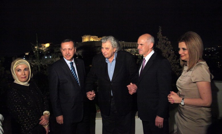 Στη φωτογραφία αυτή ήμουν πίσω από το φακό. Με το κινητό μου. 2010 επίσκεψη Ερντογάν στην Αθήνα και σχεδόν απροετοίμαστα ελάχιστα άτομα βρεθήκαμε με τον Παπανδρέου στη μικρή ταράτσα του σπιτιού του Μίκη στην Ακρόπολη. Με τη Μαργαρίτα , τη γνωστή Μαργαρώ, βρεθήκαμε αρκετές φορές μετά και συζητήσαμε πολλά.Αργότερα, μέσα στους καπνούς του μνημονίου, ήρθαμε σε κόντρα ακόμη και με ανακοινώνεις, ειδικά όταν χρησιμοποιήθηκε από δήθεν αντισυστημικά στοιχεία. ´Όμως, αρκεί μια νότα από τη μουσική του, μια λέξη από τα εγερτήριά του, για να διαγράψουν οτιδήποτε άλλο , όλων μας, εκτός από την τεράστια προφορά μιάς αιχμηρής μοναδικής προσωπικότητας. Του Μίκη Θεοδωράκη.