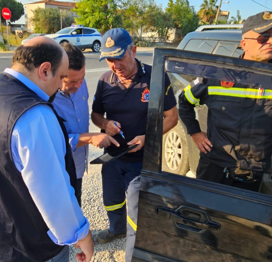 Από τη σύσκεψη στην Περιφερειακή Ενότητα Μαγνησίας με τον υφυπουργό Πολιτικής Προστασίας Χρήστο Τριαντόπουλο, τον περιφερειάρχη Κώστα Αγοραστό, την αντιπεριφερειάρχη Δωροθέα Κολυνδρίνη, τον δήμαρχο Βόλου Αχιλλέα Μπέο, τον επικεφαλής της Πυροσβεστικής, Στρατηγό, Ευάγγελο Φαλάρα και αξιωματικούς, εκπροσώπους της Ταξιαρχίας Πεζοναυτών και του ΤΕΑΣ.