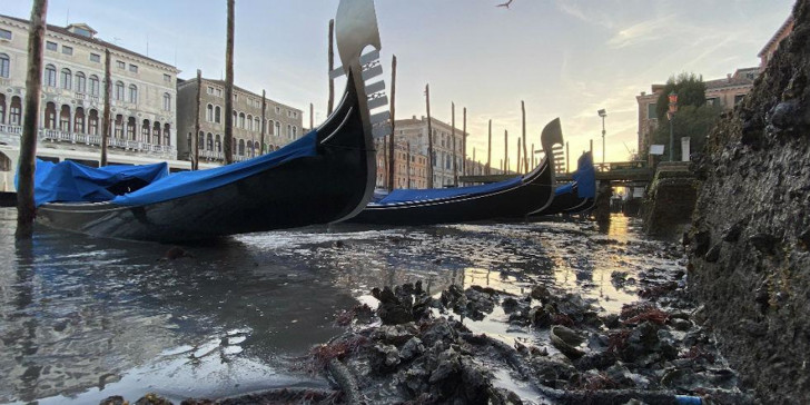 Μπροστά σ’ ένα απόκοσμο θέαμα βρέθηκαν οι κάτοικοι της Βενετίας με τα φημισμένα κανάλια να έχουν σχεδόν στερέψει λόγω μιας ασυνήθιστης άμπωτης και τις παραδοσιακές γόνδολες και άλλα πλοιάρια να έχουν αράξει στο βυθό.
