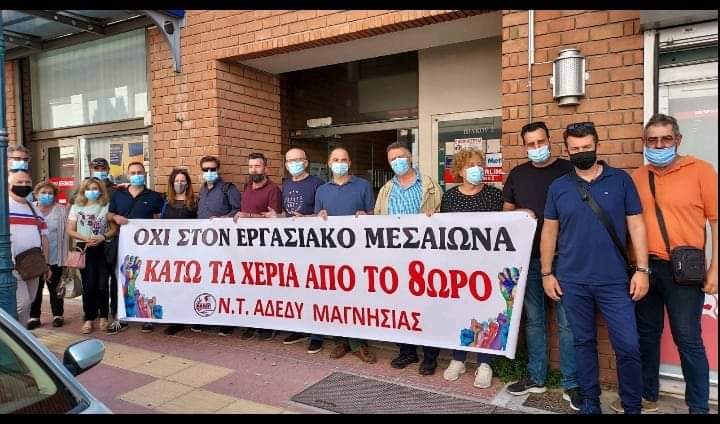 Μπροστά από τι κτίριο στο κέντρο του Βόλου όπου στεγάζεται η Επιθεώρηση Εργασίας η οποία μετατρέπεται σε Ανεξάρτητη Αρχή με το εργασιακό νομοσχέδιο της κυβέρνησης, ξεδίπλωσαν το πανό τους οι απεργοί του Ν.Τ της ΑΔΕΔΥ στη Μαγνησία.