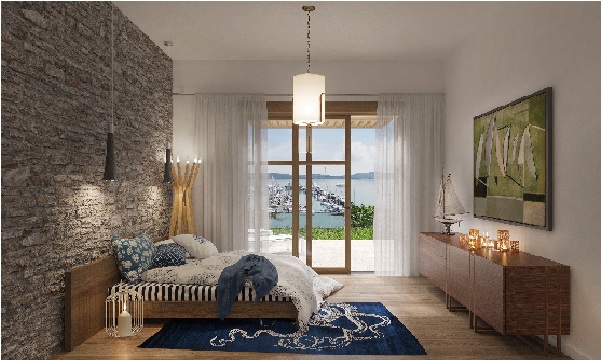 Οι δύο βασικές ενότητες κτιρίων με χρήση τουριστικού καταλύματος, οι σουίτες και τα στούντιο (βίλλες) με τις ατομικές πισίνες, διατάσσονται σε μονώροφους και διώροφους όγκους, εξασφαλίζοντας απρόσκοπτη θέα στη θάλασσα.