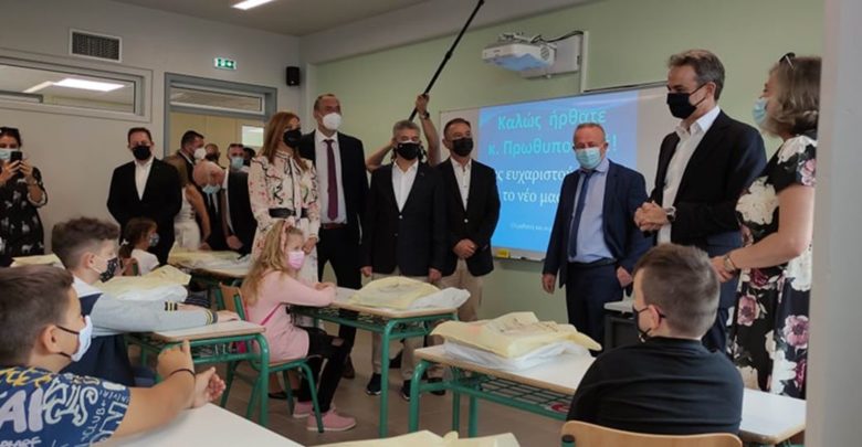 Αφού παρέστη στον αγιασμό του νεόκτιστου Δημοτικού Σχολείου στο Δαμάσι ο πρωθυπουργός κ. Κυριάκος Μητσοτάκης, ξεναγήθηκε στο εσωτερικό του σχολείου.