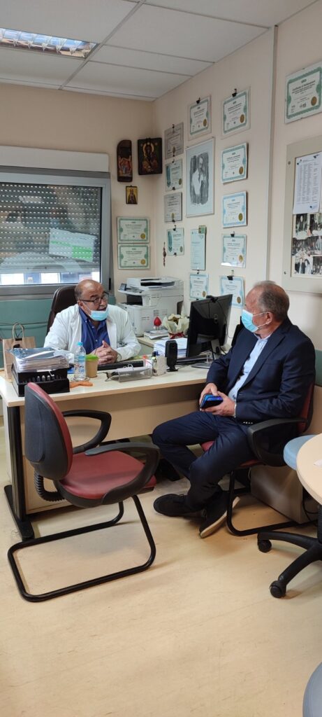 Ο υπ. Βουλευτής επισκέφθηκε τις Διοικητικές Υπηρεσίες του Νοσοκομείου, τη Χειρουργική Κλινική, όπου μίλησε με τον Διευθυντή της κ. Λύτρα, ειδικούς γιατρούς και ειδικευόμενους, την Ουρολογική και τις Παθολογικές Κλινικές, αλλά και τα Εργαστήρια και συζήτησε με τον Διευθυντή του Βιοχημικού κ. Ηλία Τογκουσίδη και τους εργαζομένους για τις δραστηριότητες του Εργαστηρίου, το οποίο έχει διακριθεί πανελλαδικά και λειτουργεί με ISO.