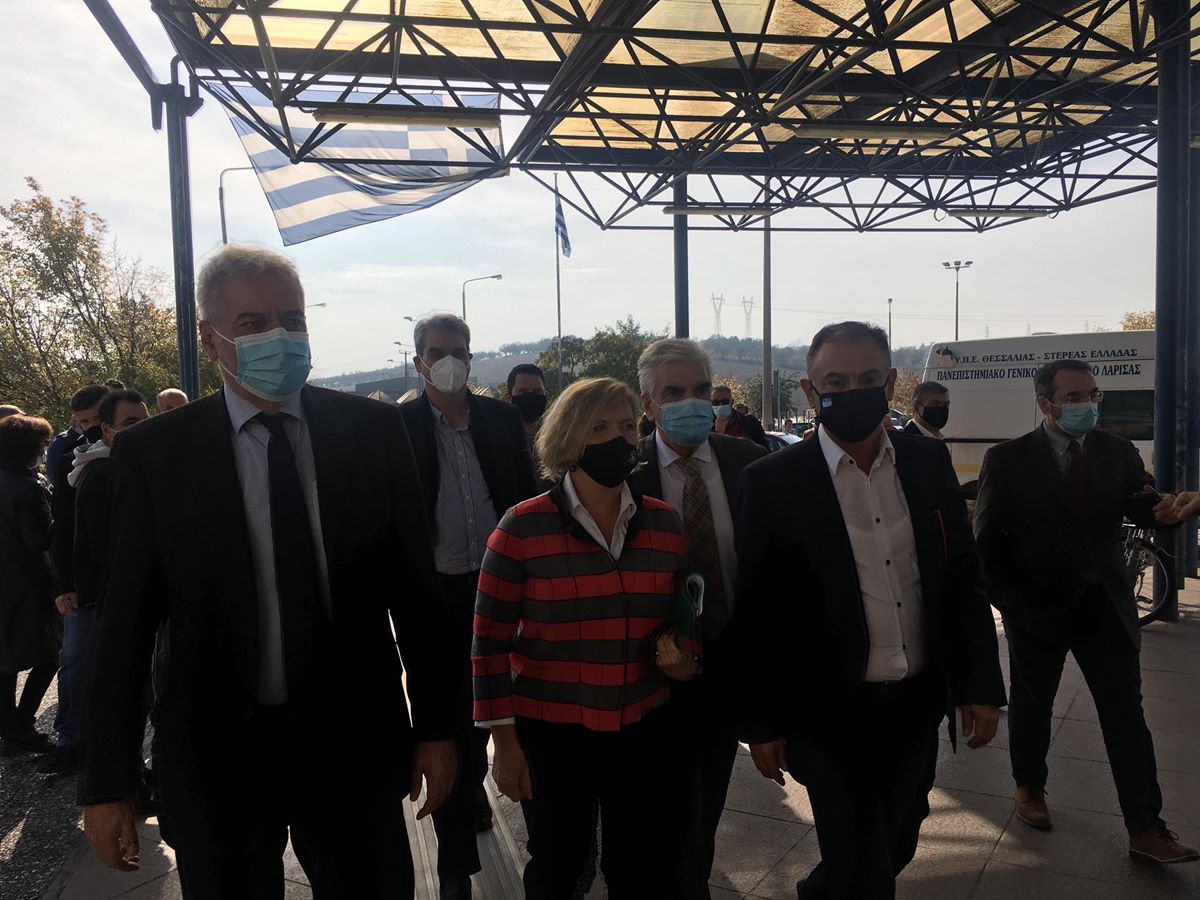 Μετέχουν επίσης ο βουλευτής Λάρισας της ΝΔ κ. Χρήστος Κέλλας, ο περιφερειάρχης Θεσσαλίας κ. Κώστας Αγοραστός και ο κ. Φώτης Σερέτης διοικητής της 5ης ΥΠΕ.