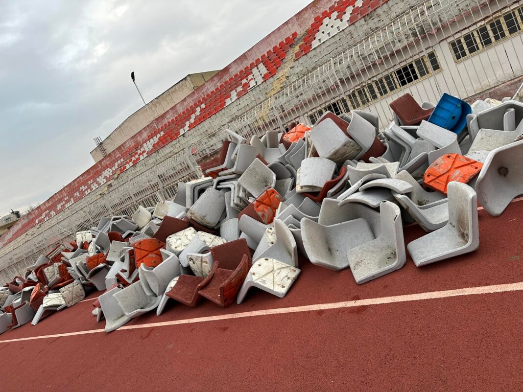 Σε ωραίο σημείο, εκεί που προπονείτε ο κόσμος άφησαν τα καθίσματα της κερκίδες που θα σνακατασκευσθει στο ΕΑΚ τα συνεργεία. φανταζόμαστε διά ολίγον…