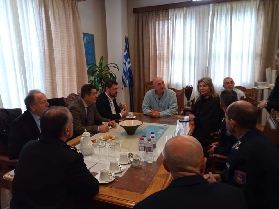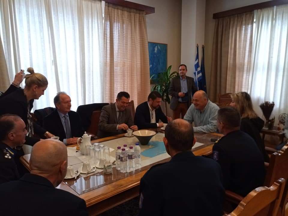 Μετά τις πρωινές συναντήσεις, χαλαρή κουβεντούλα με τον Υφυπουργό Γιάννη Κεφαλογιαννη, τον Γενικό Γραμματέα Πολιτικής Προστασίας Νίκο Χαρδαλιά και τοπικά στελέχη της ΝΔ