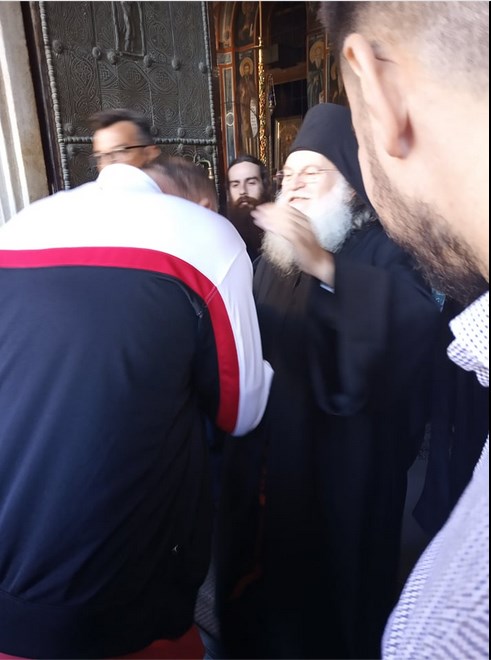 Συνοδευόενος από τους αντιδημάρχους Στεφόπουλο -Μαλαματίνη έφτασε στη Μονή Βατοπεδίου σήμερα ο Δήμαρχος Βόλου Α.Μπέος όπου τον υποδέχτηκε θερμοτατα ο Ηγούμενος Εφραίμ… παταφωνία της επισκεψης το υφος στη φωτογραφία των τριών μπροστά στην εισοδο τη Μονής… διότι είναι ολιγον μπλαζέ και άγριο…