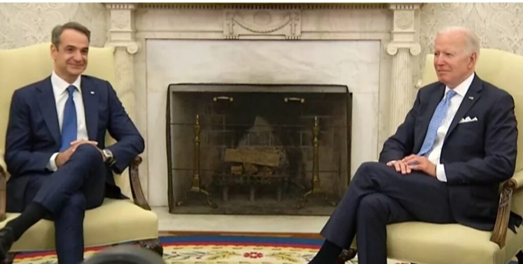 Ο Κ. Μητσοτάκης πέρασε την πόρτα του Λευκού Οίκου σήμερα το μεσημέρι (22.25 ώρα Ελλάδος), όπου τον υποδέχθηκε ο Αμερικανός πρόεδρος. Αμέσως μετά ξεκίνησε το τετ α τετ των δύο ανδρών στο Οβάλ Γραφείο όπου θα συζητηθούν όλα τα πεδία πολιτικής. Όπως τονίζεται και από τις δύο πλευρές οι σχέσεις των δύο χωρών βρίσκονται στο καλύτερο επίπεδο των τελευταίων δεκαετιών και η συνεργασία αυτή αποδίδει καρπούς σε οικονομικό, διπλωματικό και αμυντικό επίπεδο. Η κρισιμότητα έγκειται στις ραγδαίες γεωπολιτικές εξελίξεις που πυροδότησε η εισβολή της Ρωσίας στην Ουκρανία και στις αναταράξεις στην παγκόσμια οικονομία με αιχμή την ενέργεια.