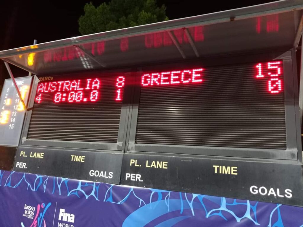 Τεταρτη σερι νίκη αποψε της Ελλάδος επί της Αυστραλίας με 15-8 που πέρασε πανηγυρικά στην Ωκταδα του Παγκόσμιου Πρωταθλήματος νέων που διεξάγεται στο Βόλο.