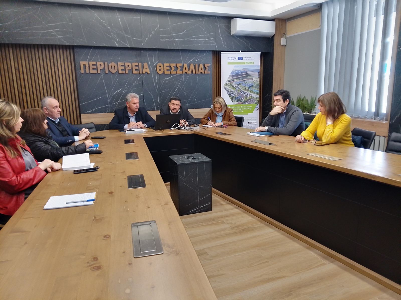 Τη Δευτέρα 30 Μαρτίου πραγματοποιήθηκε στην Αίθουσα Περιφερειακής Επιτροπής της Περιφέρειας Θεσσαλίας συνάντηση της ομάδας ενδιαφερόμενων μερών του ευρωπαϊκού έργου DAPHNE: Decarbonising healthcare in EU regions, με τη συμμετοχή εκπροσώπων των τεχνικών υπηρεσιών νοσοκομείων της Θεσσαλίας, στο πλαίσιο της ενίσχυσης του διαλόγου και της σταδιακής διεύρυνσης της συμμετοχής των τοπικών φορέων στο έργο.