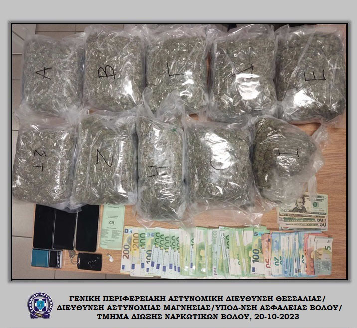 Ειδικότερα, μετά από κατάλληλη αξιοποίηση στοιχείων για διακίνηση ναρκωτικών, οι αστυνομικοί της προαναφερόμενης Υπηρεσίας με τη συνδρομή αστυνομικών του Αστυνομικού Τμήματος Βόλου/Ομάδα ΔΙ.ΑΣ., εντόπισαν, χθες το απόγευμα στο Βόλο, τον δράστη να οδηγεί Ι.Χ.Ε. αυτοκίνητο και σε γενόμενο έλεγχο, βρέθηκαν και κατασχέθηκαν: