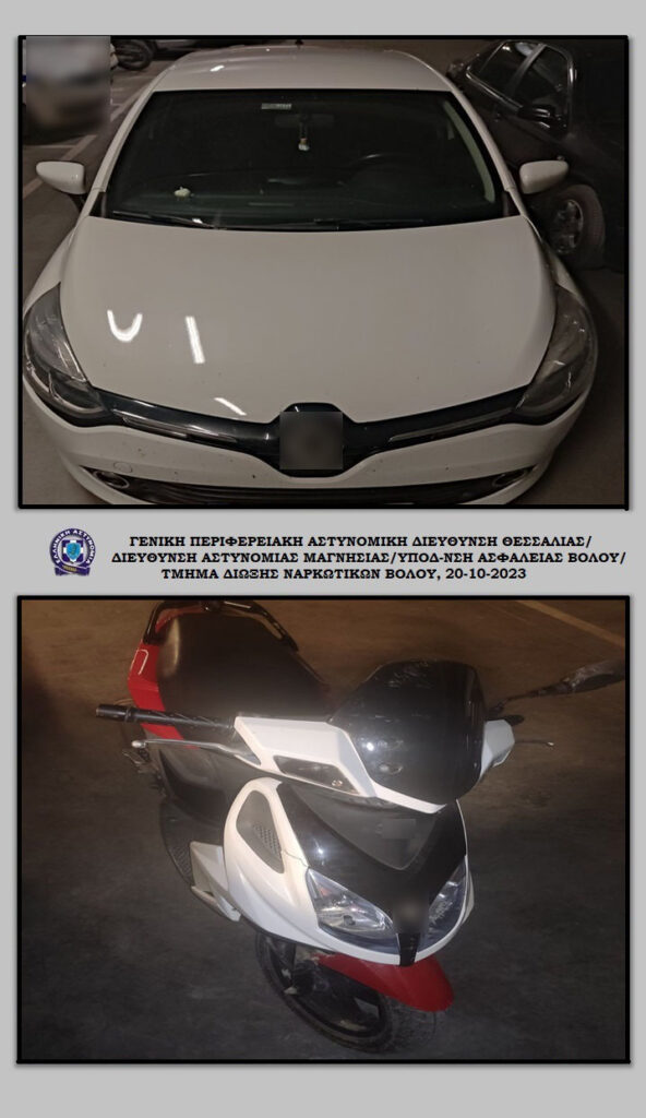 Κατασχέθηκαν, επιπλέον, 1 Ι.Χ.Ε. αυτοκίνητο και 1 δίκυκλη μοτοσικλέτα, ως μέσα διευκόλυνσης της παράνομης δραστηριότητάς του.