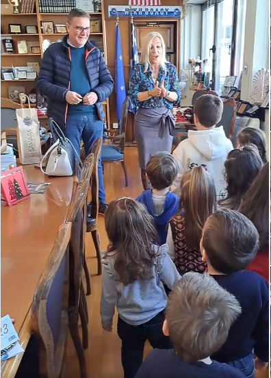 Τα κάλαντα των Φώτων άκουσε από τους λιλιπούτιους μαθητές του Palatino η ντιπεριφερειάρχης δωροθέα Κολυνδρίνη και ο Εντεταλμένος περιφερειακός Σύμβουλος Γιάννης Τέας στο Διοικητήριο