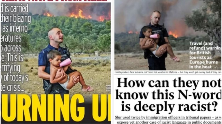 Mirror, Independent και The Times επέλεξαν τα συγκεκριμένα καρέ προκειμένου να “στολίσουν” τα πρωτοσέλιδά τους, στα οποία αναφέρονται στις συνέπειες της κλιματικής κρίσης, αλλά και στα προβλήματα που έχει δημιουργήσει ο καύσωνας και οι φωτιές στους τουρίστες που έχουν επιλέξει περιοχές της νότιας Ευρώπης για τις καλοκαιρινές διακοπές τους.