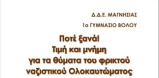 Η εκδήλωση του 1ου Γυμνασίου Βόλου για τα θύματα του Ολοκαυτώματος