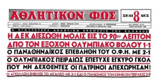 Πρωτοσέλιδος στο ΑΘΛΗΤΙΚΟΝ ΦΩΣ ο Ολυμπιακός Βόλου 68 ακριβώς χρόνια πριν