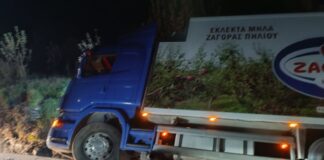 “Έφυγε” από τον δρόμο φορτηγό στην μπαζωμένη γέφυρα της Ζαγοράς