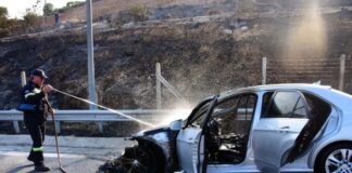 Εντοπίστηκε σορός αγνώστων στοιχείων σε φλεγόμενο αυτοκίνητο στον Αλμυρό