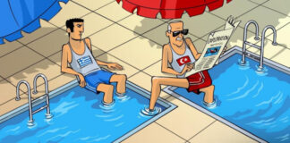 Το σκίτσο με τον «αραχτό» Ερντογάν να πατά σε δύο πισίνες & το σχόλιο Αμερικανού...