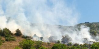 Φωτιά πάνω από το πεδίο βολής στο Σαρακηνό (φωτο)