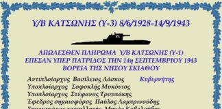 ΣΑΝ ΣΗΜΕΡΑ ΣΤΙΣ 14 ΣΕΠ. 1943 ΒΥΘΙΣΤΗΚΕ ΤΟ ΥΠΟΒΡΥΧΙΟ ΚΑΤΣΩΝΗΣ ΣΤΗ ΣΚΙΑΘΟ