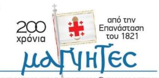 Η σημαία που υψώθηκε στις Μηλιές το 1821 λογότυπο της Μαγνήτων Κιβωτός