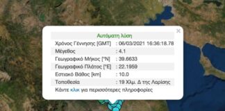 Κουνήθηκε η Λάρισα από ισχυρό μετασεισμό 4,1 ρίχτερ